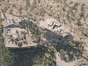 对突厥-萨珊(印度-萨珊)时期寺庙遗址的科学发掘开始于1998-2000年间,但至2019-2020年方得恢复,其中有重要的仪式性大理石雕刻被发现。根据对有机质遗物的放射性碳素测年,其纪念性建筑最初使用阶段的校正年代为7世纪后期至8世纪。同时,该考古团在基台上方的岗顶发现了一处大型管理区,以保护一座巨大水池。