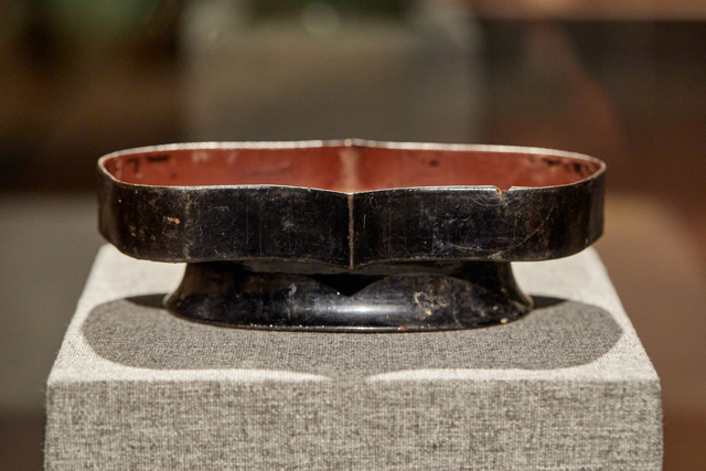 此件漆盘采用中亚、西北地区流行的器具样式,但其圈足却是中原地区流行的形制。黑、红两色搭配,显得整齐素洁。