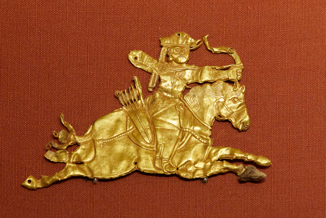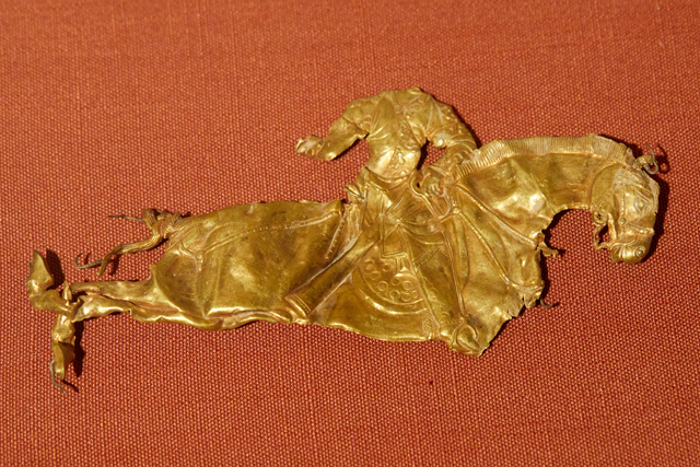 人物形金饰片Gold Plaque with a Figure Riding a Horse