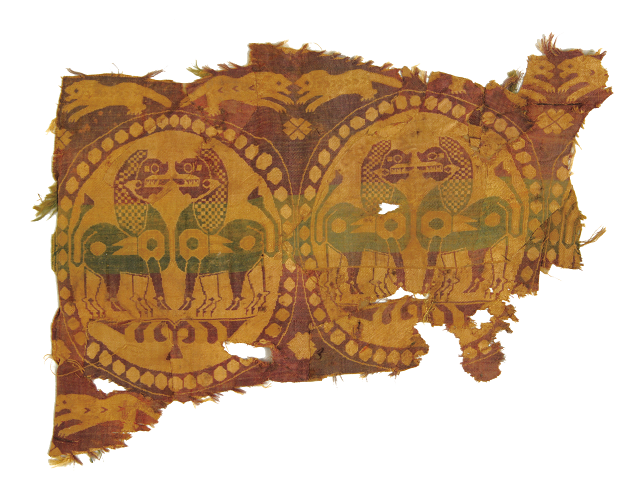 团窠联珠对狮纹锦Samite with Lion in Pearl Roundels