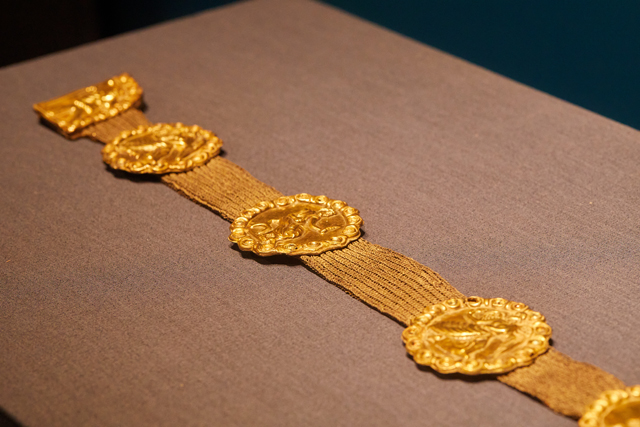 古代腰带不仅具有束腰功能,也能突显男性服装阳刚硬朗的特点,此外,腰带也是古代 等级地位的标志,关乎社会认可的价值与声望。而金银腰带更是社会顶层或贵族高官彰显自己地位、维持权威的标志物,是城邦互贈的重要礼品。