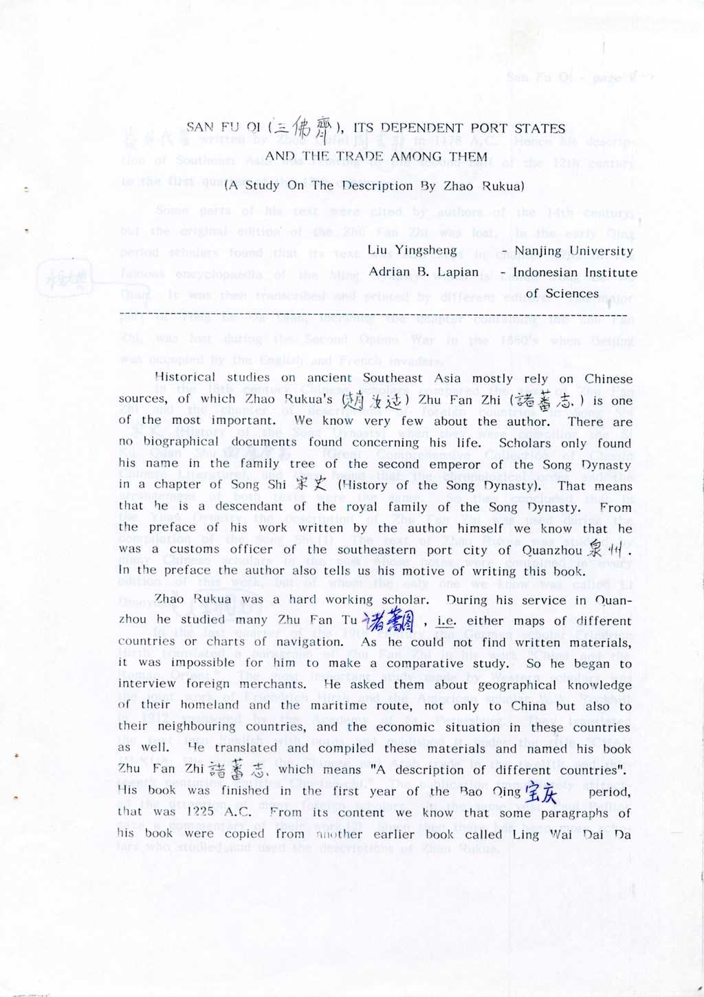 1991年1月海丝考察印尼讨论会上刘迎胜发言论文,三佛齐